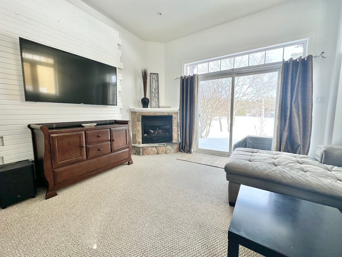 Luxury lakefront cottage. Shallow wade-in water near the shore and deep off the large 20x20ft dock. Custom stone steps will take you down to both the dock and the lake. Large outdoor dining options and many areas to sit and relax. Spacious chef's kitchen. Large indoor wood-burning fireplace, outdoor fire pit, and lots of water toys, including 2 kayaks, 1 canoe and a SUP board. There is also a trampoline for the kids! Fully maintained road makes this a perfect winter getaway location in winter!