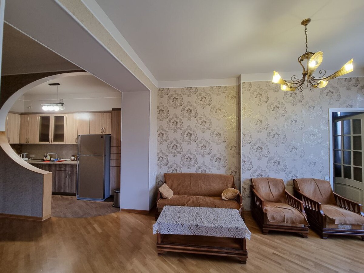 私たちの快適な2ベッドルームのアパートは、静かで快適な地区の上にそびえる建物の中にあります。建物自体がエレバンのランドマークです。窓からは、首都の勝利公園のユニークな景色が見えます。街の環境に優しいエリアにあります。この場所は、休暇や出張に最適です。スタイリッシュな休暇をお楽しみください。家の近くには多くのカフェ、レストラン、ショップ、観光スポットがあります アパートには快適な休暇のためのすべての設備があります。