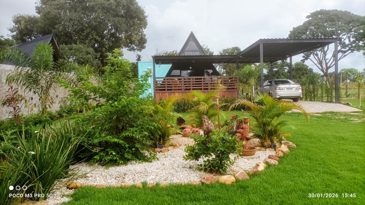 豊かな自然に囲まれたゴイアニアから40分の場所にあり、プライベートトレイル、滝、動物、田舎での日常生活を体験できます。 大人も子供も楽しめる本当の楽園です! 家は快適で、必要なものがすべて揃っています。寝室、バスルーム、玩具室、フルキッチン、湖を見渡せるバルコニー。釣り用のダム、ハンモック、キャンプエリアがあります。 予約されたゲストのみがスペースを利用することができ、訪問者を受け入れることはできません。