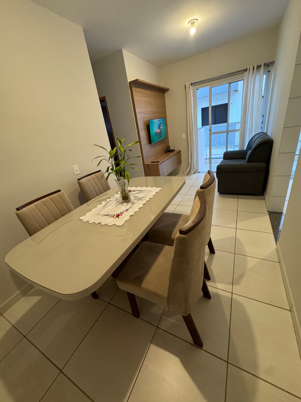 Apartamento moderno e aconchegante, perfeito para sua estadia! 🏡 Suíte com ar condicionado ❄️ e segundo quarto com cama de solteiro (cama extra estilo gaveta) e TV 📺. Sala com dois ambientes (TV 📺 e jantar 🍽️), 2 banheiros 🚿 e cozinha equipada 🍴. Lavanderia completa 🧺 e vaga de garagem 🚗. Condomínio silencioso 🧘♀️, bem iluminado 💡, com elevador 🚪. Design pensado para seu bem-estar, oferecendo todo o conforto e comodidade para uma estadia tranquila e relaxante.