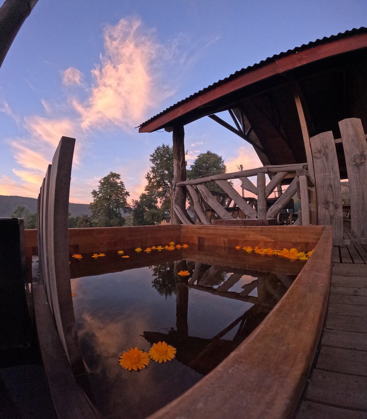 Nuestra cabaña está ubicada en la cordillera de icalma , rodeada de bosques nativos , contamos con tinaja temperada, ideal para descansar en familia y hacer actividades al aire libre, wifi para mantenerte conectado si es necesario. estamos comprometidos con la regeneración de los espacios naturales, tu estadía con nosotros ayudará a sostener proyectos como propagacion de especies nativas , construcción de humedal fitodepurador, construcción de huerto orgánico , etc.