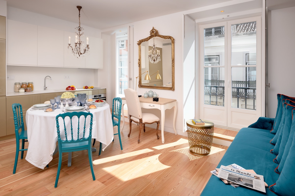 リスボンの歴史あるバイシャにあるエレガントな2寝室の豪華なお部屋