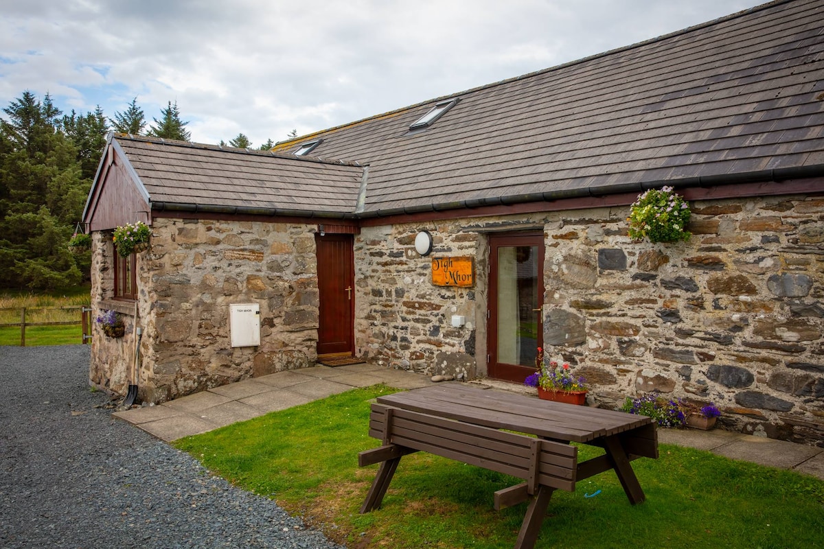 モル島のロスにある実際に営まれている小さな農場の中にある、アメリカカラマツの茂みの屋根をした快適なキャビンは、リラックスした休暇を過ごすのに最適な場所です。 スタッファ島とトレシュニッシュ諸島の景色を望むことができ、ソファでくつろぎながらベン・モア山の上に昇る日の出とルンガ島の上に沈む夕日を眺めることができます。 テレビ、Wi-Fi、電話の電波などのモダンな設備は使いません。代わりに、昔ながらのボードゲーム、本の山、レコードプレーヤー用の新旧レコードのセレクションをご用意しています。
