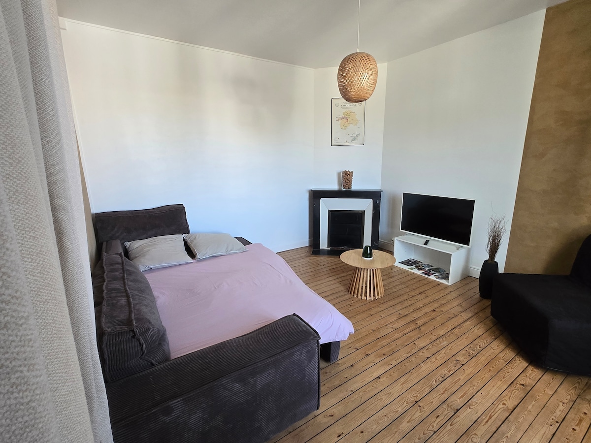 ブルボンへようこそ! シャルルヴィル・メジエールの中心部に位置し、デュカル広場からわずか200メートルの場所にある、新しく快適なアパートにご宿泊ください。 モダンで明るく、完璧な設備を備えたこのアパートメントは、安らかな夜を過ごすための形状記憶マットレスを備えた高級寝具を提供しています。 •到着時のウェルカムパック、コーヒー、紅茶など •おすすめの場所や地元のアドバイスが書かれた独占PDFガイド •セルフチェックイン •高速Wi-Fi 週末、観光、またはプロの滞在に最適です!