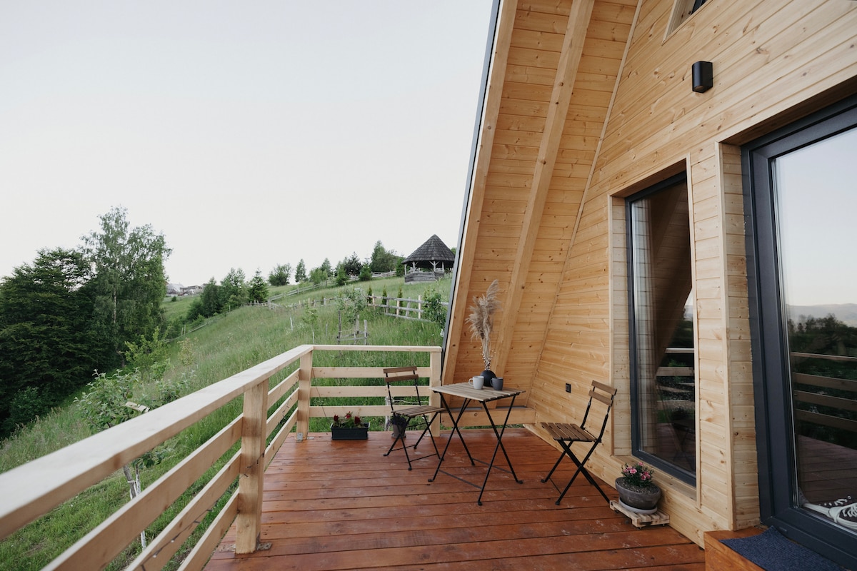 Amont Chaletは、有名なブラン城から数分のところにあるペステラ村の牧歌的な丘に位置する、居心地の良いモダンなAフレーム2つとノルディックハウス1つで構成されています。 ピアトラ・クライウリ山とブセギ山の間に位置し、これらの山々に直接壮大な景色を望むことができます。