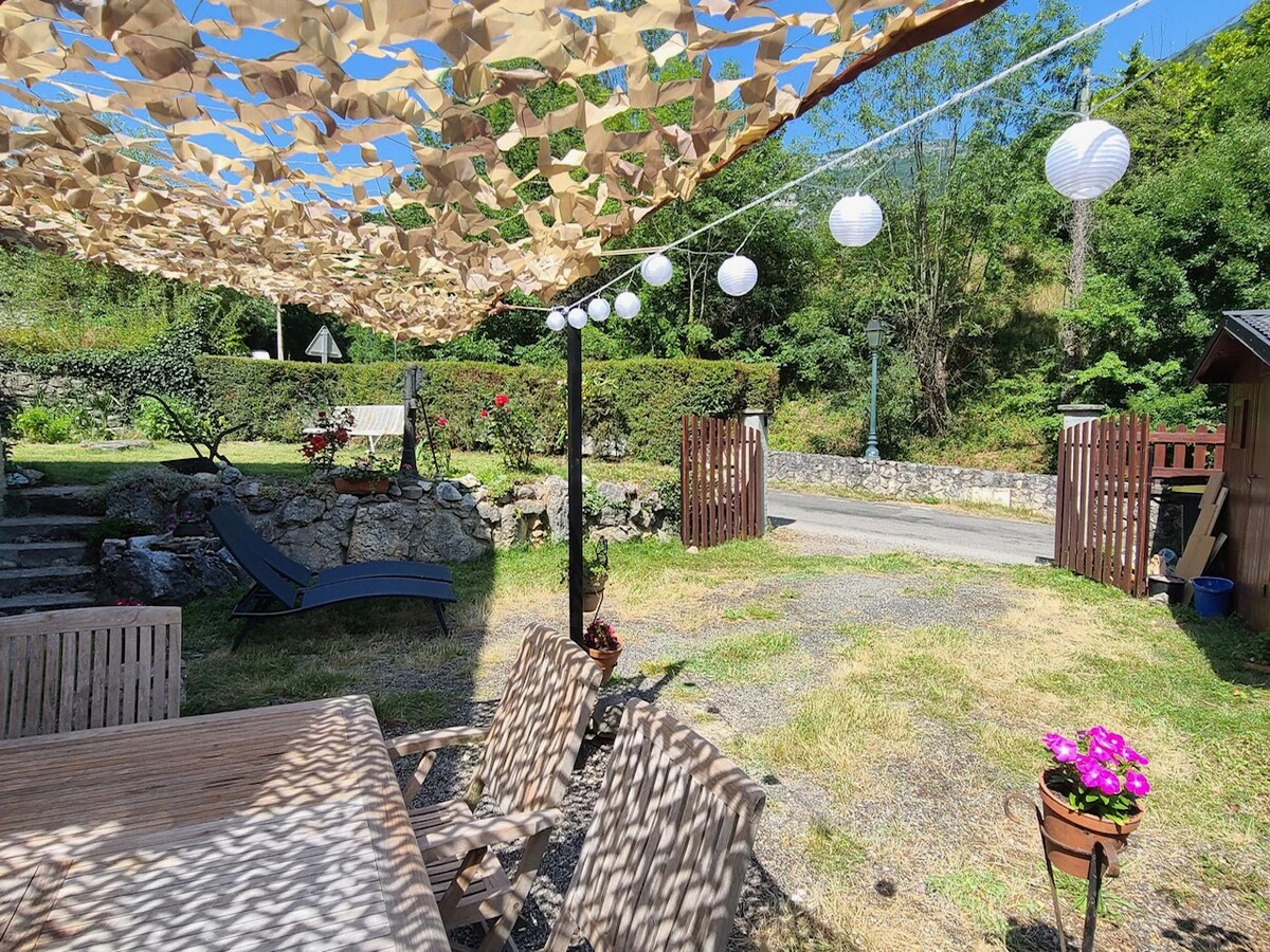アリエジュ県ピレネー山脈の中心にある本物の小さな家 自然を愛する人に最適 近くにスキー場、散歩、ハイキング、温泉があります 私は近くに住んでいるので、いつでも対応できます 連棟住宅 天候が許さない限り、冬はテラスは使用できません
