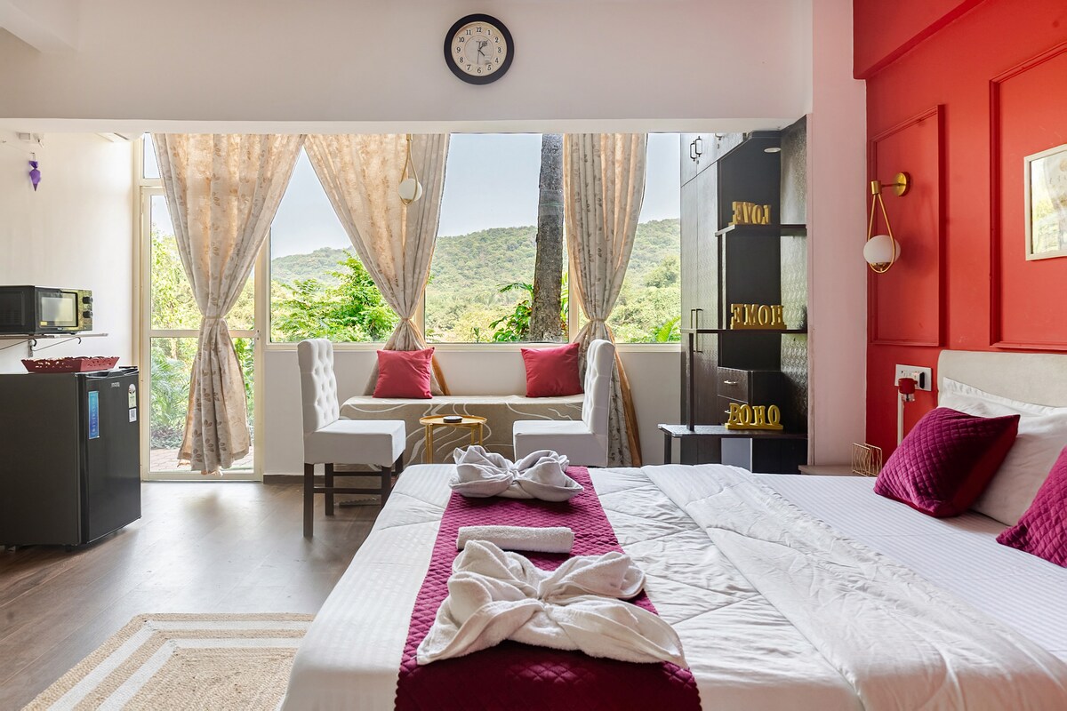「Aaria coveへようこそ。丘の景色といい雰囲気が融合する場所です!モダンな家電、リフレッシュできるプール、ノースゴアの賑やかなビーチ、ナイトライフ、市場に近い絶好のロケーションなど、すべての必需品が揃った快適な宿泊施設です。探索したり、リラックスしたりするのに、ここはゴアの完璧な拠点です。リラックスして景色を楽しみ、ゴアの魔法に身を任せましょう!」 カップル/小家族/おひとり様に最適 お得な料金の素晴らしい宿泊先です! 満足度保証!
