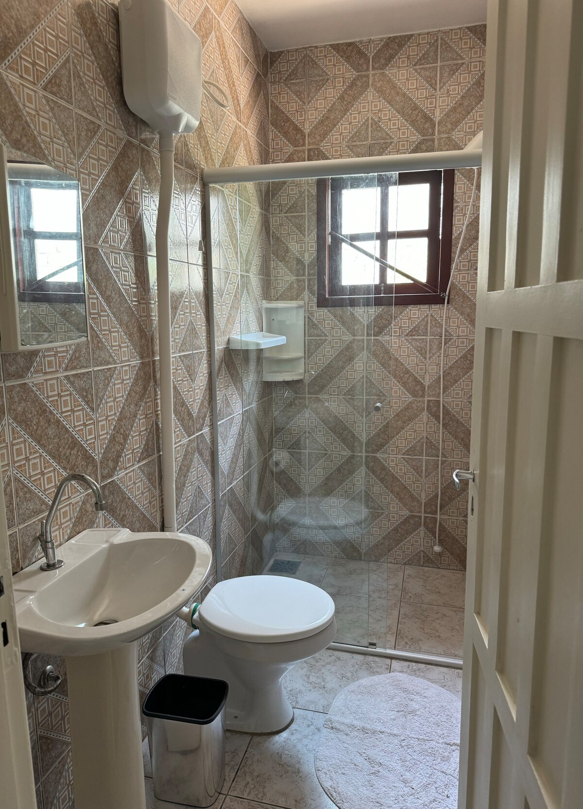 Esqueça de suas preocupações neste lugar espaçoso e tranquilo. Com pátio espaçoso e gramado verdinho para relaxar e aproveitar o sol com sua família ou amigos. Conta com uma piscina e espaço para refeições e churrasco na parte externa. Com garagem coberta para 2 carros. Todo o conforto e comodidade para você aproveitar o momento. Mercado, farmácia e praia há 5 quadras da casa! A casa possui água de poço, própria para banho. Fornecemos um galão de 20 litros para uso em comida e para beber.