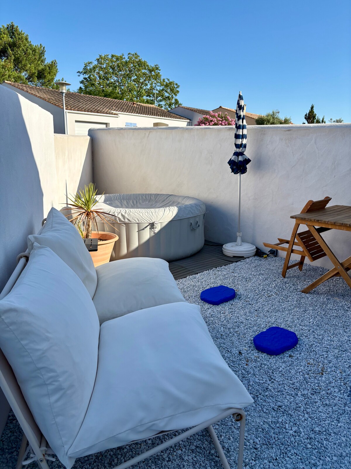 ロワイヤン、サント、ロシュフォールの三角地帯の中心部にある、ビーチからわずか25kmの静かな田舎の隠れ家をご覧ください。 広々とした110平方メートルのコテージは、2ヘクタールの19世紀のワイン農園にあります。専用テラスと囲まれた庭園をお楽しみください。 4月中旬から10月上旬まで、27°Cに温められた塩水プールに浸かりましょう。ほかのゲストは2人しかいません。 自然と静けさを愛する人々にとって真の楽園です。