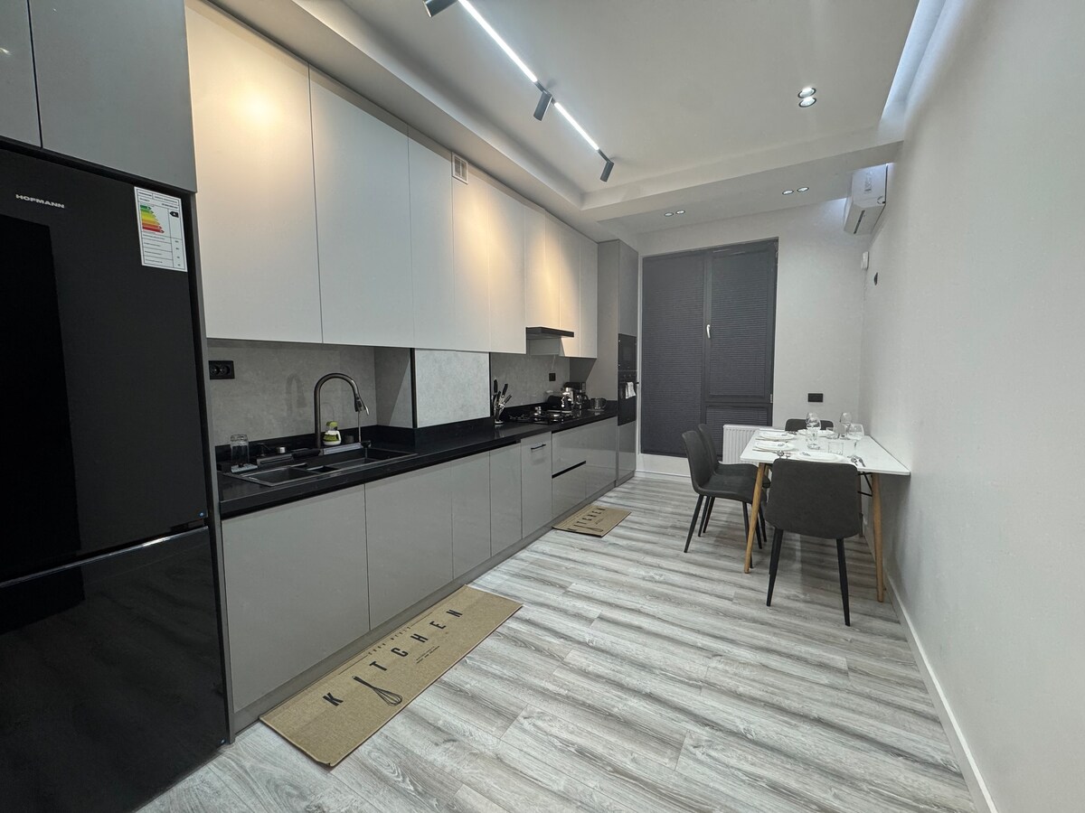 アンディジャンの中心部に快適に、スタイリッシュに滞在しましょう。このモダンなマンション・アパートには、明るいリビングルーム、ダイニングエリア、設備の整ったキッチンがあります。大きな窓からは自然光がたっぷり入ってきます。居心地の良い寝室では、ゆっくりとお休みいただけます。カフェやお店の近くに位置し、短期滞在にも長期滞在にも最適です。