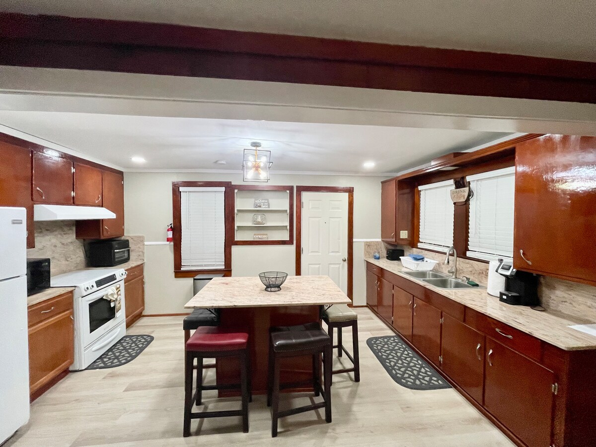 バトンルージュ近郊の家族連れ向けの宿泊先「Comfort Cozy Oasis」へようこそ!ゲート付きの広々とした5寝室4バスルームの宿泊先には、ロフト、広いキッチン、電気自動車用充電器、バスケットボールコート、ブランコ、居心地の良い暖炉があり、10人まで宿泊できます。高速Wi-Fiと静かな裏庭をお楽しみください。ルイジアナ州立大学からわずか30分、ニューオーリンズにも近いです。快適さ、広さ、南部の魅力を求めるご家族連れや団体に最適です!