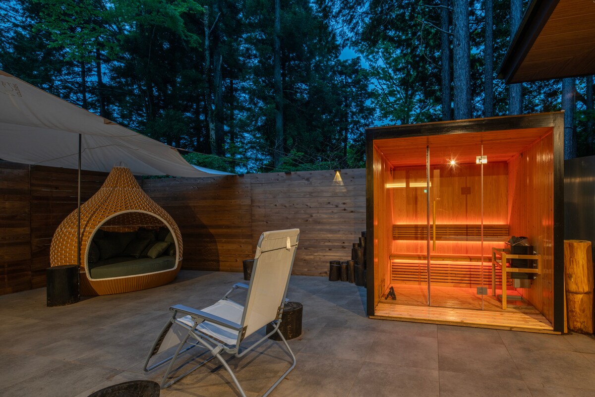 四季を感じられる自然に囲まれた、サウナ付き貸切別荘。 箱根の中心地にある箱根湯本駅から車で約5分、鳥の声が迎えてくれるのは、森の中にひっそりと佇む静かなプライベート空間。 ハーフムーンの窓付きバレルサウナ、 箱根の山々から湧き出た冷たい湧水、 満天の星空を眺めながらリラックスタイム、 サウナ好きが求める全てを揃えました。 森の中にある施設なので、BBQや焚き火なども楽しむことができます。 仲間と賑やかな時間を過ごしたり、ゆっくりとした時間の流れを感じたり、楽しみ方はあなた次第です。 【都会では味わえない、" 静寂 "をお楽しみください】