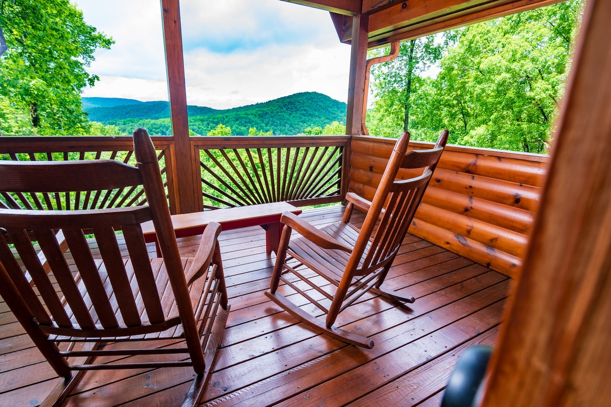 レビュー77件、5つ星中4.97つ星の平均評価露天風呂、ゲームルーム、ファイヤーピット付きのマウンテンビューのキャビン