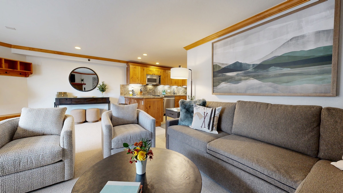 スノーマスの中心部にある、ゲレンデに面した素晴らしい2寝室の隠れ家!