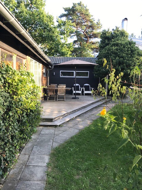 中世のオーフスの壁のすぐ外にある古い木造家屋の小さなアパート。アパートは、専用の入り口、2つの部屋、専用のシャワールームを備えた住居の一部を形成しています。 一方の部屋には、冷蔵庫、電子レンジ、電気ケトル、卵ゆで器、トースターを備えた小さなキッチンがあります。車は玄関の外の芝生に駐車できます。また、ガーデン家具もあります。