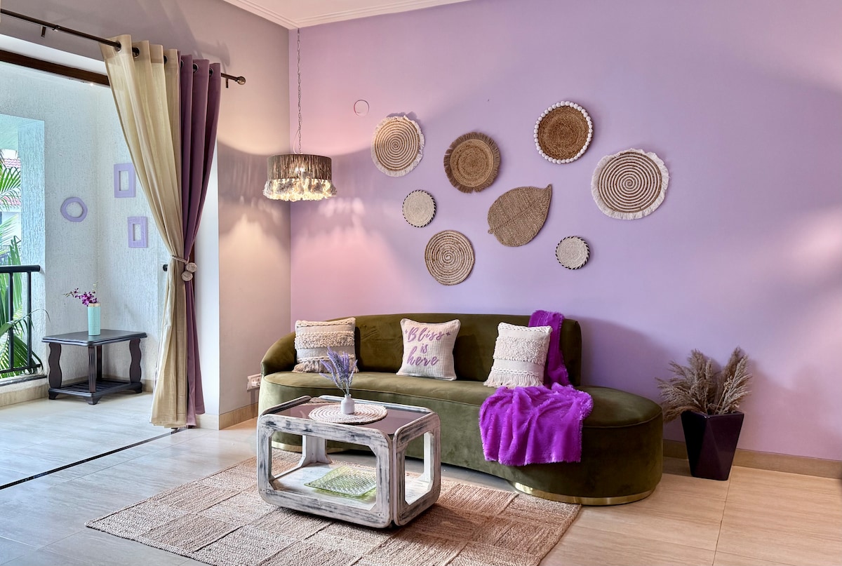 We invite you to tuck in a Tropical hideaway at Siolim🌴 Drenched in calming hues of lilac-olive-warm brown, every corner has been curated to soothe ur senses & promote slow living🪴 Wake up to the palm leaves dancing on ur private patio,🌿 sip on ur morning coffee as u overlook the shimmering pool, & soak in the lush botanical vibes that surround u💜 Whether you're journaling by the window, enjoying a sundown soirée, or simply doing nothing at all this space makes it all feel intentional!