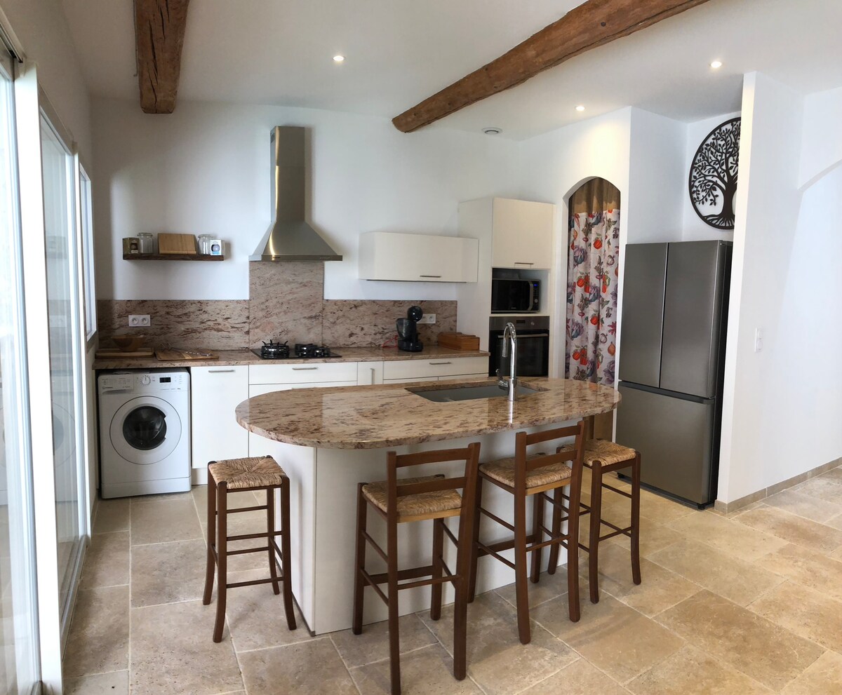 地中海の灌木とブドウ畑に囲まれた静かな村にあります。 美しいハイキングコース(徒歩、自転車、マウンテンバイク)の出発点。 秘密のクライミングスポットのすぐ近く。 ホストのブドウ栽培者であるエマとフィリップが、ワインテイスティングを通して、この地で生産されるオーガニックワインの製造に関する皆様の好奇心を満たすことができます。