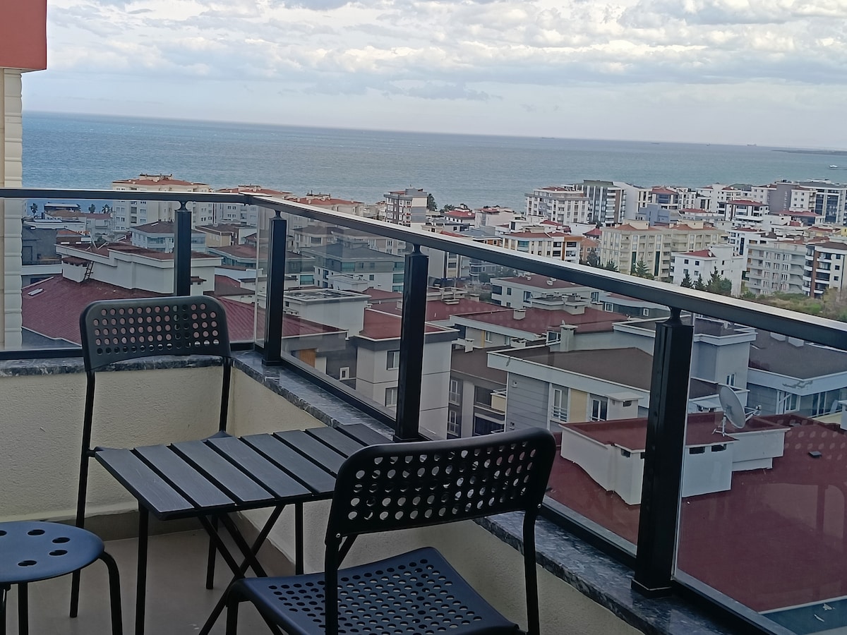 Samsun'un en nezih semtinde özenle döşenmiş evimiz sizlere temiz güvenli bir konaklama sunacaktir.Sahile aracla 2dk mesafede..Evde tv,buzdolabı,camaşir makınesı,elektrıklı ocak,cay kahve,tost makınesı ayrıca,cay kahve nescafe,sıvıyag,bulasık,camasır detarjanı temiz havlu,nevresim,şampuan ve duş jeli wc kağıdı ve genel temizlik malzemeleri bulunur,r25 m2lik balkonu dağ deniz ve şehir manzaralidir,Her msafir sonrası detaylı temizlik yapılır.Genş aile ve arkadaş gruplari için çok ıdealdır