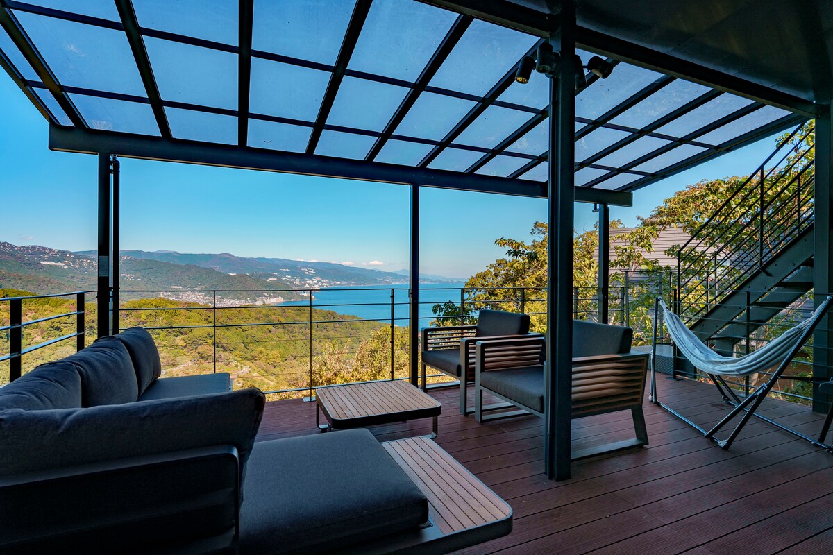 南熱海の温泉付き隠れ家別荘/一面に海と山と空を望む最高の景色/大型スクリーン/屋上BBQ/最大8名