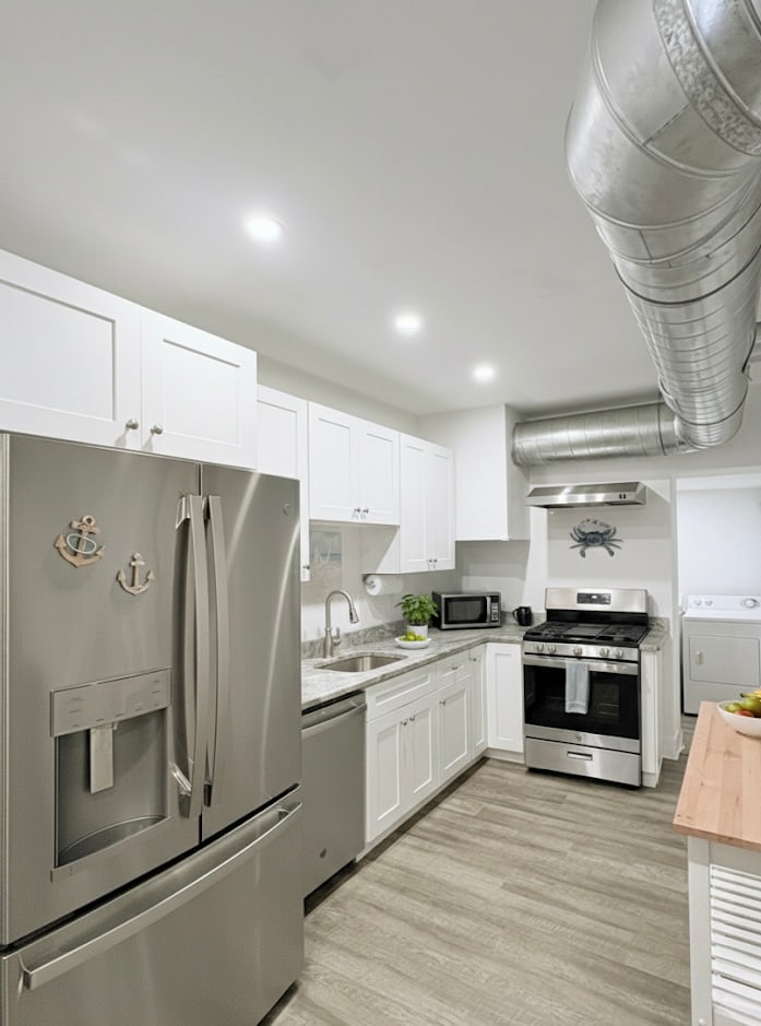 This four bedroom home is modern and recently renovated, making it the perfect beach getaway for a couple. Located just one block from the Atlantic City boardwalk and beach, this home offers easy access to all that the area has to offer. The kitchen is brand new and features custom stone countertops and modern appliances, making it sleek and perfect for those who love to cook. Overall, this home is perfect for a modern beach escape and is sure to provide a comfortable and enjoyable stay.