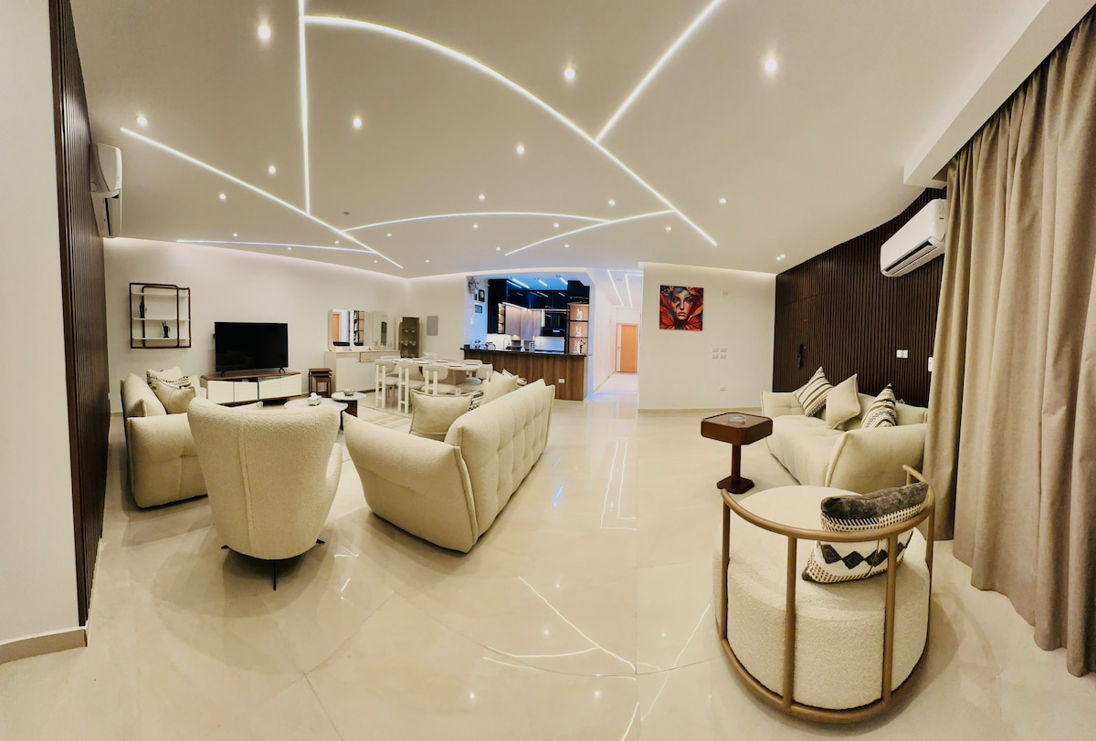 ご家族や素敵なお友達と一緒に、おしゃれな宿泊先での滞在をお楽しみください。 専用玄関と専用駐車場を完備した貸切の一軒家です。 屋外スペースで友達と緑の中で素晴らしい滞在をお楽しみください。テレビ付きのお部屋です。エジプトで最も魅力的なエリア、シェイク・ザイード市にある宿泊施設です。 -シェイク・ザイードの観光ウォークストリートから2分 - エンターテイメント、レストラン、コーヒーをお楽しみください。 -エジプトモールから7分 モール・アル・アラブから5分 アルホサリー広場から10分