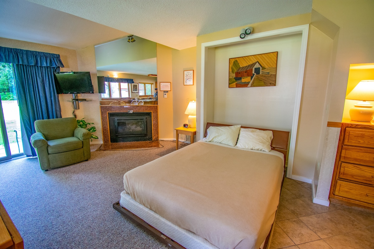 #attitashstudioNH situated in a prime location at the base of Attitash Mountain Ski Area, making it the perfect choice for anyone who loves the White Mountains. Skiers, snowboarders, hikers, outdoor enthusiasts alike will appreciate the resort-style amenities and comforts of our cozy studio. After a long day on the slopes or exploring the outdoors, relax in the jetted tub or curl up by the warm gas fireplace.