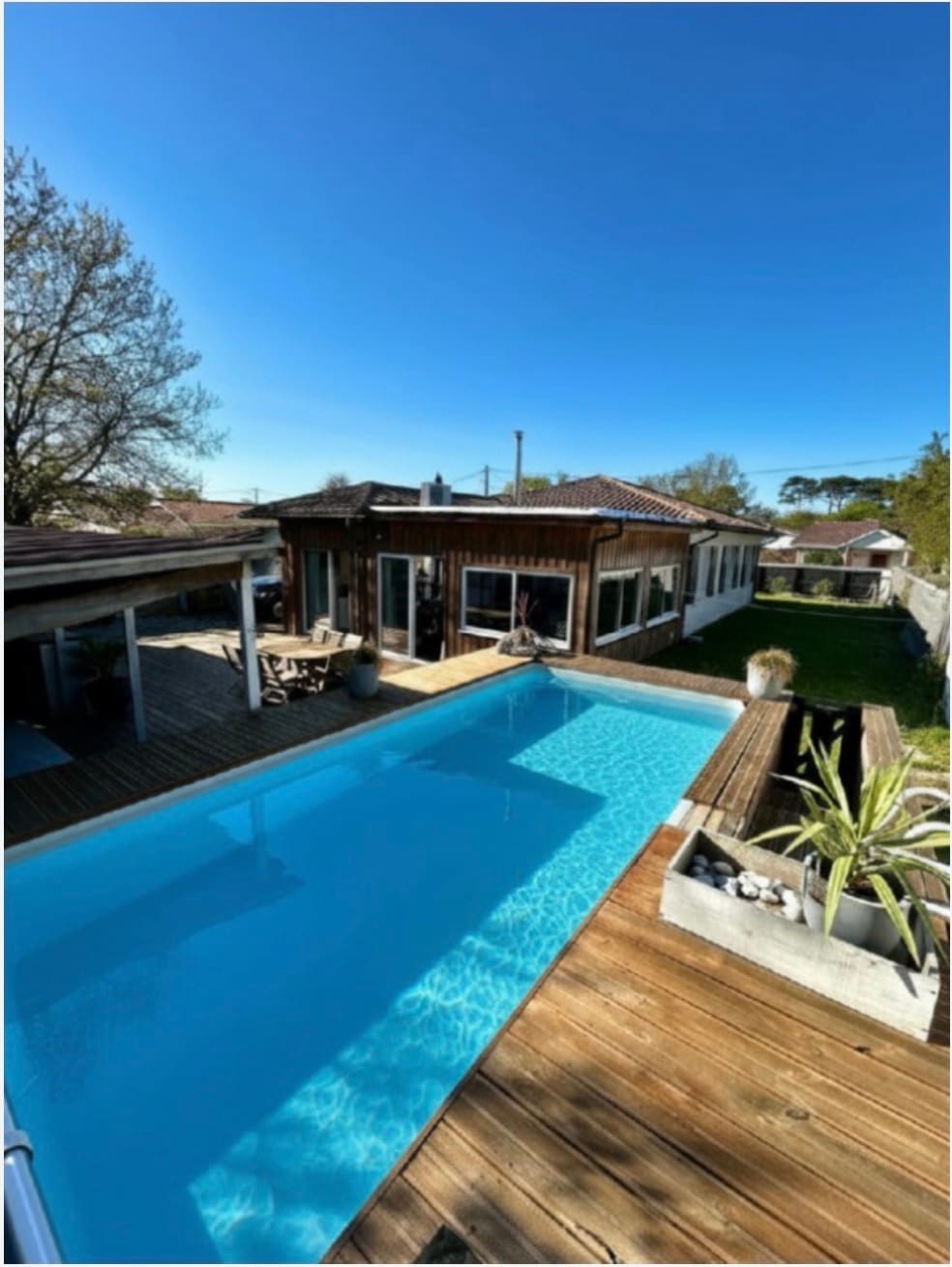 ラ・テスト・ド・ビュッシュの静かな地区、カゾーに位置するこの家は、湖の近くにあり、エアコン完備で、家族や友人との快適な滞在に最適です。 自転車道や小さなお店に近いです。 この家には、4つのベッドルーム、オープンキッチン、ベランダ付きの美しいリビングエリア、バブルスパ付きのテラス2つ、木々の生い茂る庭、炭火バーベキューとガスプランチャ、ペタンクコート(ボール付き)があります。