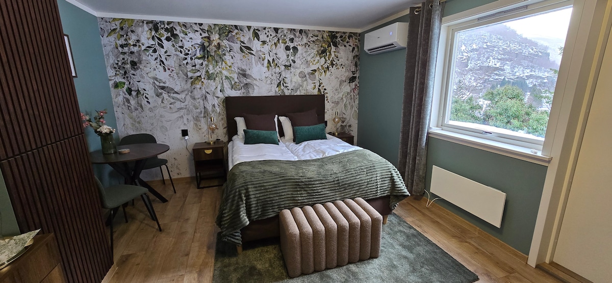 素晴らしい景色を望む快適な2ベッドルームのアパートは、フロームの中心部から徒歩12分の静かなエリアにあります。 渓谷とブレッケフォッセンの滝の美しい景色をお楽しみいただけます。 建物の正面に無料駐車場があります。 寝室は2部屋あり、1部屋はクイーンサイズベッドのマスターベッドルーム、もう1部屋はダブルベッドがあります。 キッチンには設備が整っており、ご滞在のための基本的なものが用意されています。 バルコニーでモーニングコーヒーを飲み、ご自宅のように過ごしてください!