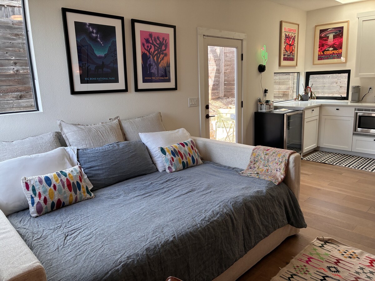 フルベッド、簡易キッチン、セミプライベートの玄関を備えた清潔で静かな200平方フィートのワンルーム。専用のフェンス付きパティオをお楽しみください。街を探索した後にくつろぐのに最適です。 専用パティオと玄関 小さいながら機能的なバスルーム(写真参照) 無料の路上駐車 中心部の静かな立地 ハウスルール: 喫煙、ペット、ベーコンは禁止です🙃 小さなバスルームには、シャワー、トイレ、カーテンの後ろに「キッチンシンク」があります。ご予約前にご確認ください。 シンプルで居心地がよく、穏やかな滞在のために考え抜かれたデザインです。