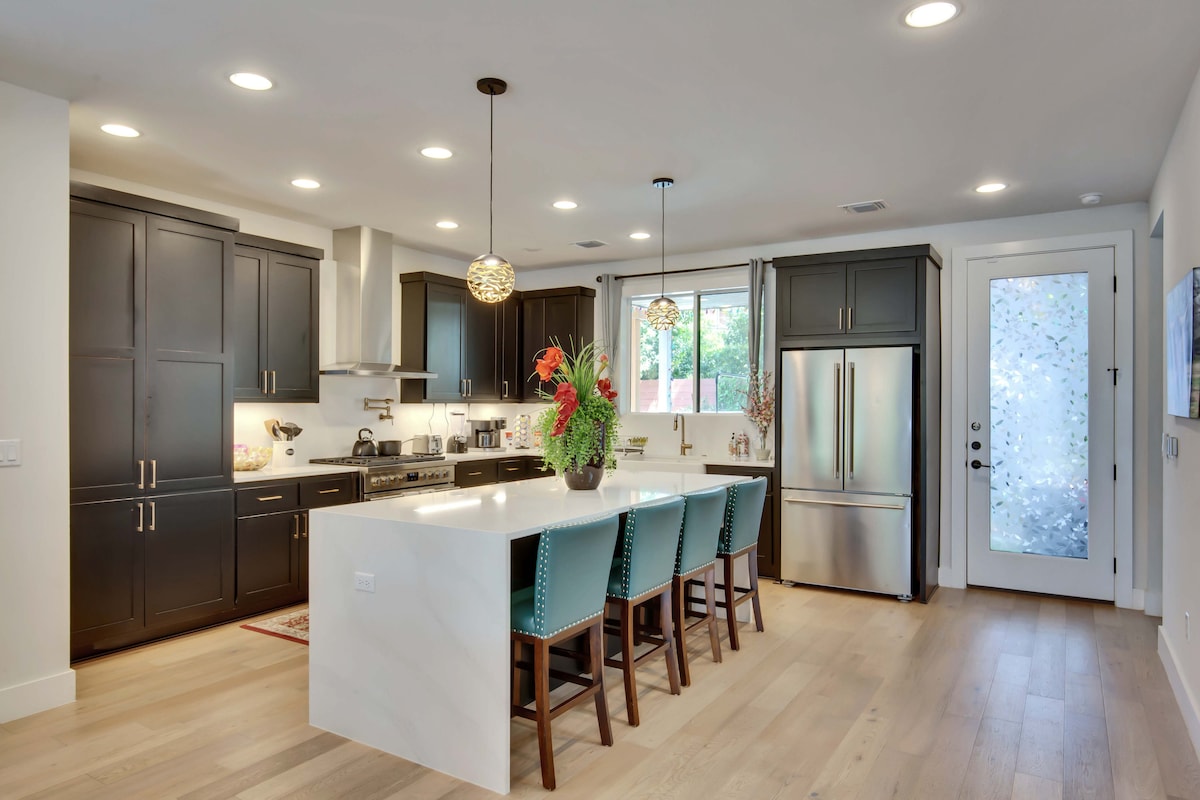 ミニマリストオアシスへようこそ。ジルカーパークとバートンスプリングスからすぐの広々としたデザイン性の高い隠れ家です。 快適さとプライバシーを重視して建てられたこの4ベッドルーム/4バスルームの家は、お出かけ、フェスティバル、または友人や家族との旅行に最適です。 専用のホットタブでリラックスしたり、オープンリビングスペースや芝生の庭を楽しんだり、徒歩数分で素晴らしい料理やバーに行くことができます。 考え抜かれたアメニティ・設備、スタイリッシュなインテリア、そして最高のロケーション。 この宿泊先は、静かな隠れ家と街へのアクセスの良さが完璧にバランスよく取れています。