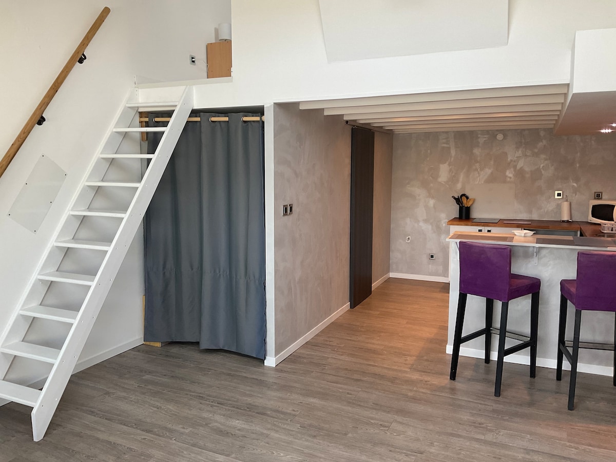 Un design unique dans une configuration atypique de type souplex. Venez découvrir ce superbe petit loft de 30 m2 situé en plein cœur de l'hyper-centre, à deux pas de la Place Stanislas et en face de la rue Gourmande. Laissez-vous séduire par la déco néo-rétro baignée dans l'univers du voyage, le tout sous le regard d'une Moto Guzzi de 1974. L'immeuble est adossé à d'anciennes fortifications de la ville de Nancy où vous trouverez dans la chambre chaque pierre signée par le tailleur de l'époque.