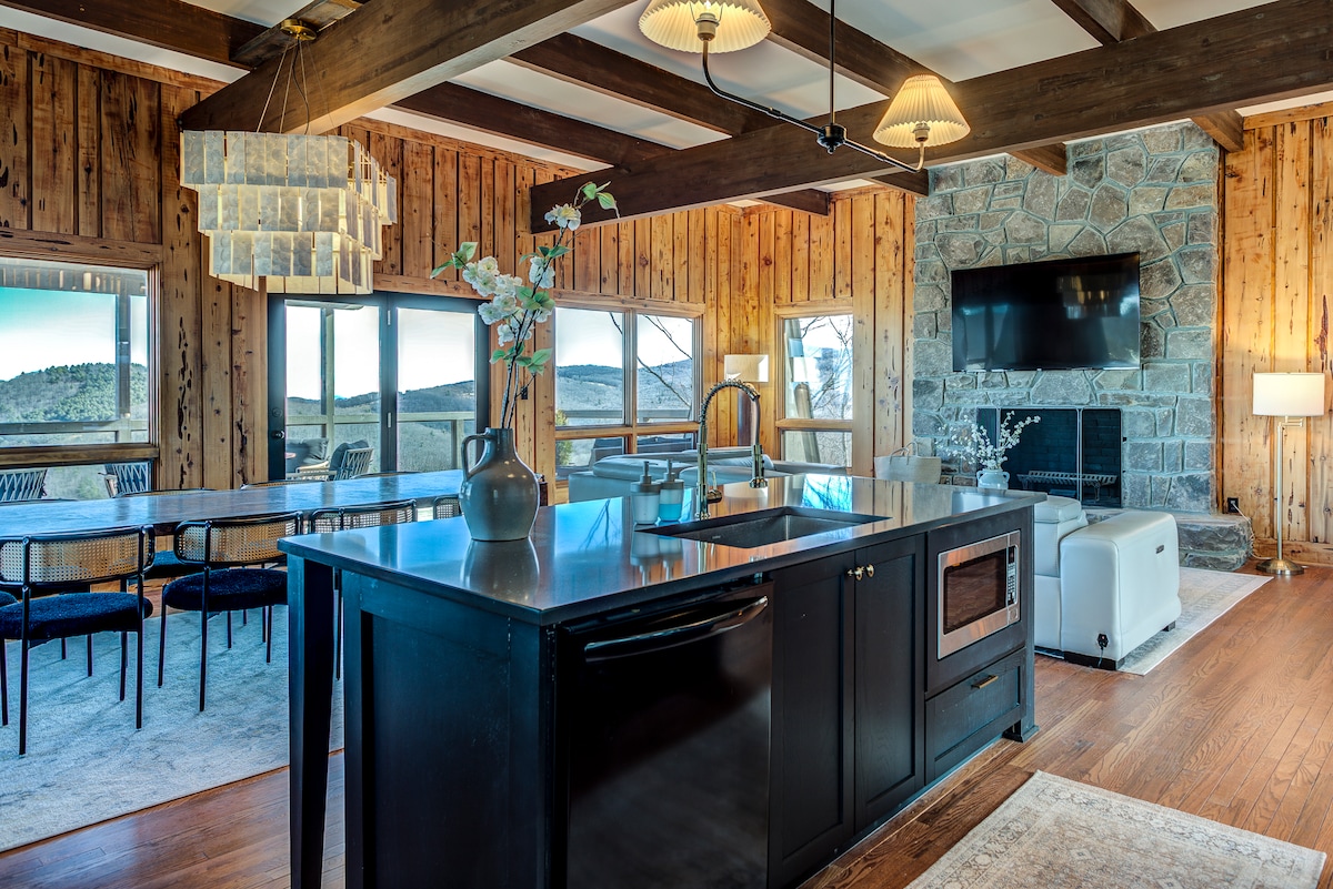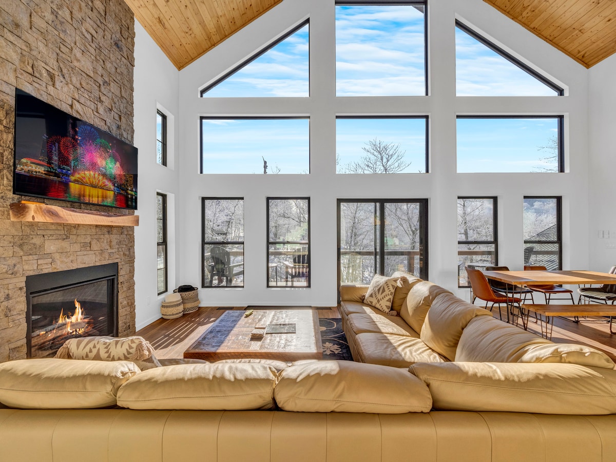 The Elk Chalet is a mountain modern home at the top of Sleepy Hollow. Look over the Blue Ridge Mountains & Pisgah National Park at an elevation of 3,300 ft while enjoying your complimentary snacks at our s'mores bar or relaxing in our 5-person hot tub! Located only 12 minutes from Boone or Sugar Mountain with a 33 minute drive to Beech Mountain! Our guests are welcome to the Mill Ridge community tennis courts, seasonal swimming pool, private clubhouse, playground, and hiking trails!