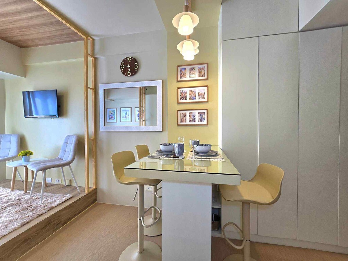 This newly opened studio unit is fully furnished with quality beddings to make sure you have a comfortable and relaxing stay in the city. Equipped with unlimited wifi and Netflix ready TV,building amenities such as our child friendly pool and playground, you and the family have all you need for a great staycation. Either you are travelling for business or pleasure our place is the best for you to stay.
