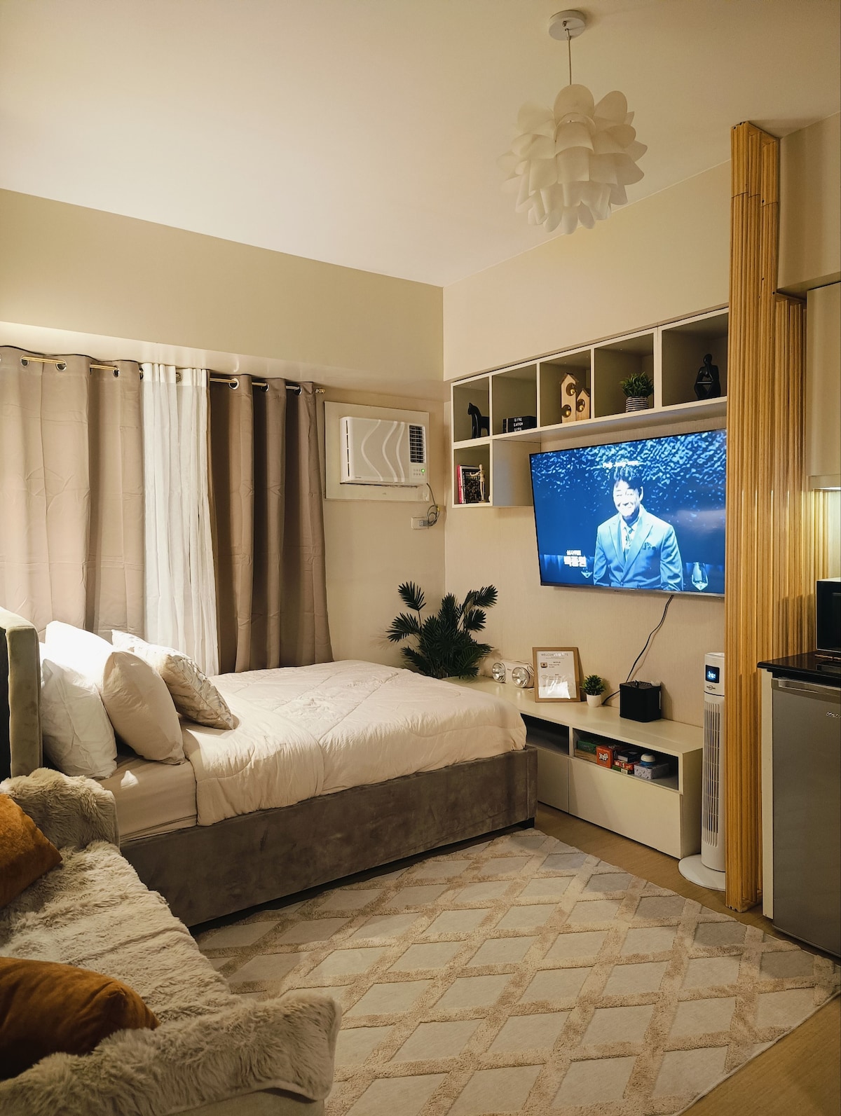 アイボリー・レジデンスのスタイリッシュな2ベッドスタジオ|ダバオ市の最高のロケーション|メガ割引あり! チェックイン時間は柔軟に対応しており、チェックアウトは午後2時です。 人気のモール、レストラン、ショップへも簡単にアクセスできます。週単位のご予約は20%、月単位のご予約は33%オフで、ホテルスタイルの快適さとご自宅のような利便性をご体験いただけます。 当宿泊施設のワンルームには、高速Wi-Fi、Netflixを備えたスマートテレビ、設備の整ったキッチンがあり、ゆったりと快適に過ごすのに最適です。