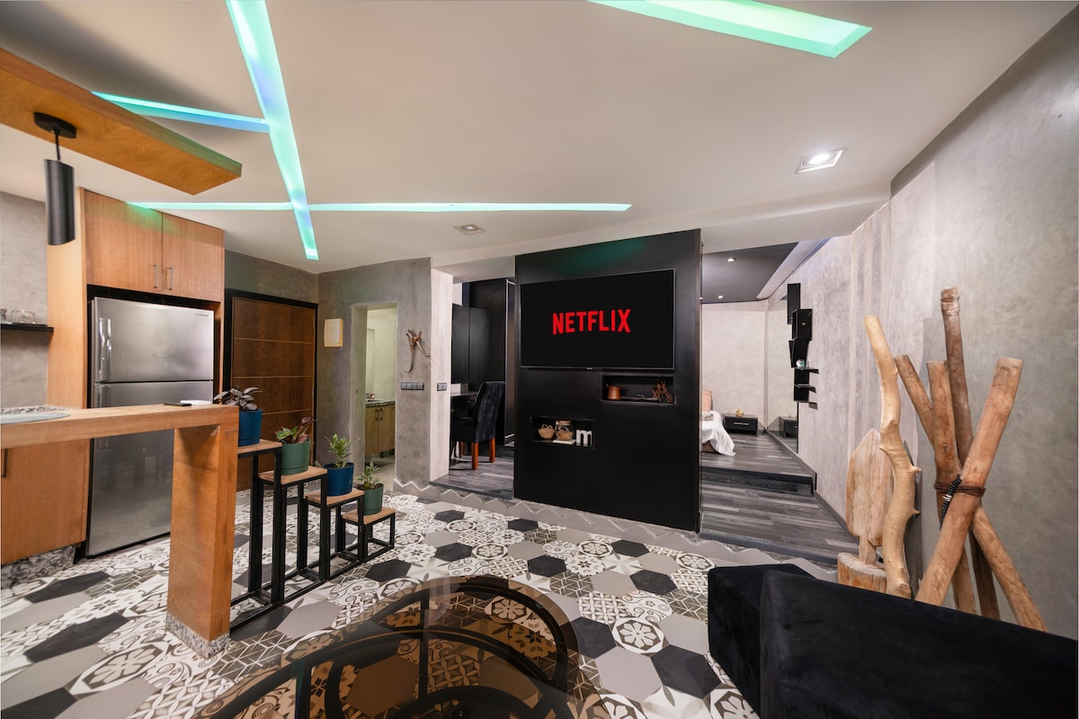 インダストリアルラグジュアリースタジオ - エアコン、モダンなキッチン