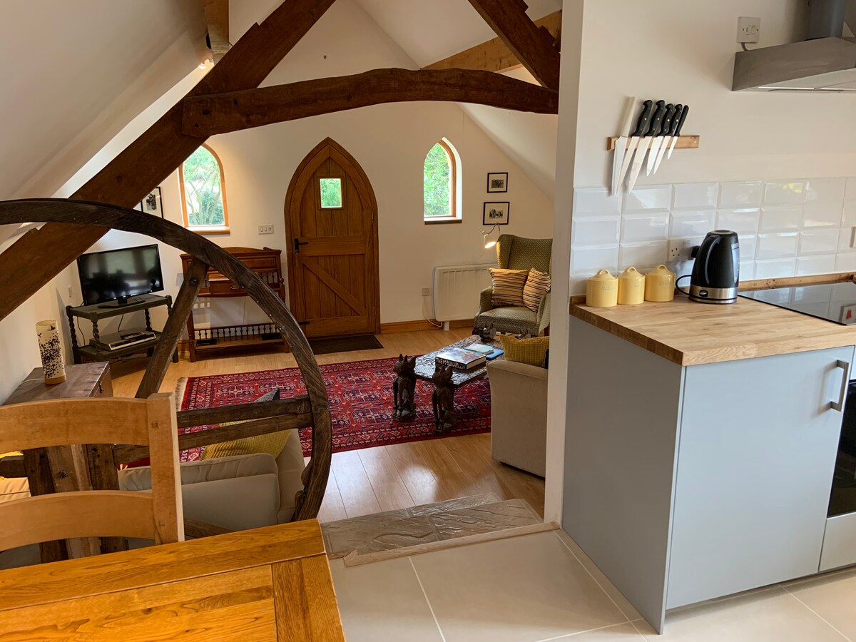 スイート、シッティングエリア、キッチンを備えた、居心地の良いプライベートスタジオルーム。 この明るい素敵なお部屋は、独立したダブルガレージの上にあり、メインハウスとは別になっているため、プライバシーとリラクゼーションがより充実しています。 お茶とコーヒーのアメニティ、朝食用品、新鮮なリネンをご用意します。 この物件は、ドーセットとの境界にあるイースト・デヴォンの人気のキミントン村にあります。 村にはパブが2軒、ガレージ、ミラーズファームショップがあります。 また、数多くの散歩道があるシュートの森にも面しています。