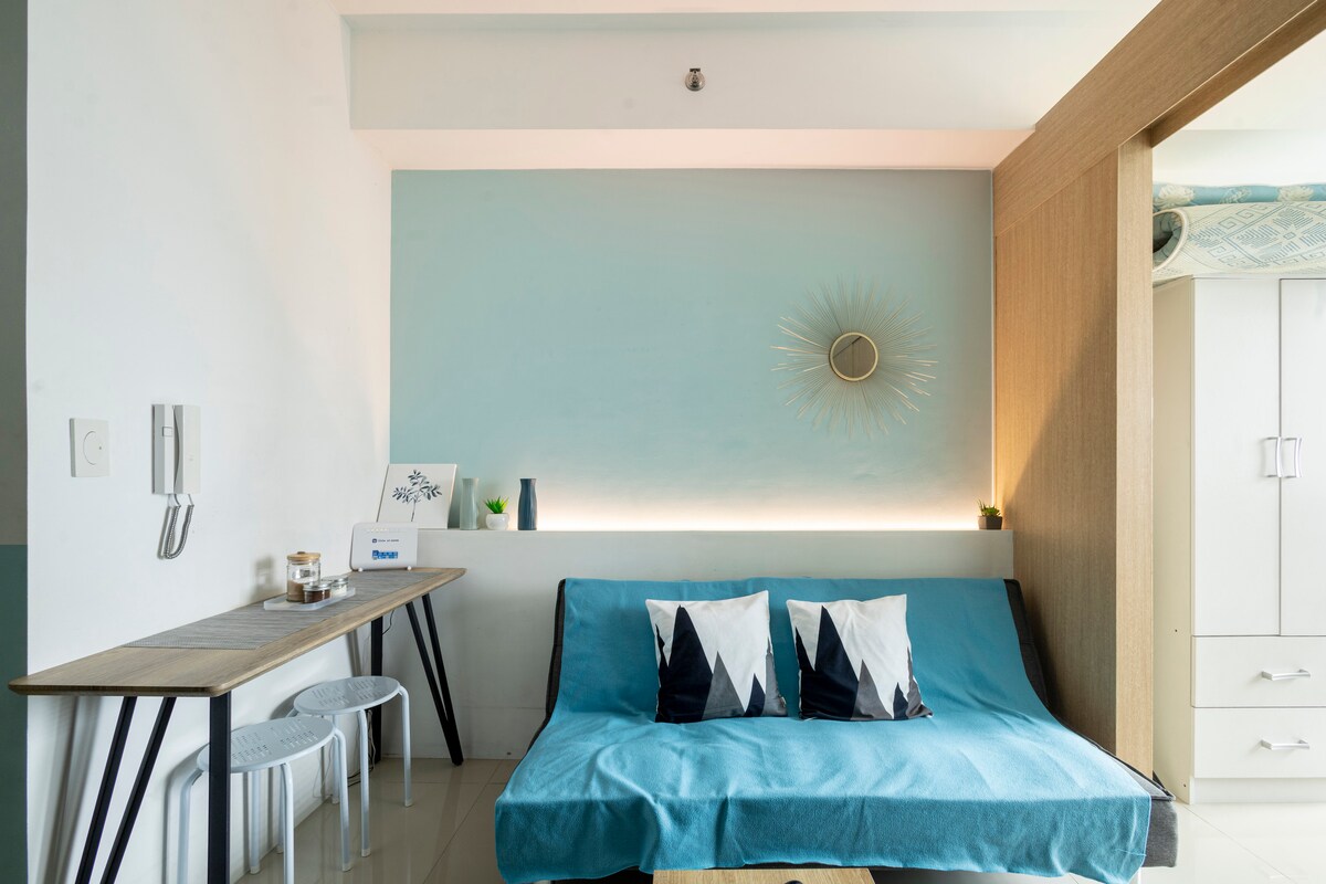 穏やかなボーホー風のオアシスへようこそ! この美しくデザインされた29平方メートルのコンドミニアムユニットは、落ち着いたグリーンセージをテーマにしており、リラクゼーションと若返りに最適です。 豪華なソファでNetflixを見て心地よい夜を過ごしたり、設備の整ったキッチンでおいしい食事を作ったりできます。 アヤラモールクローバーリーフ、バリンタワックマーケット、エドサ、スカイウェイに近く便利なロケーションです。