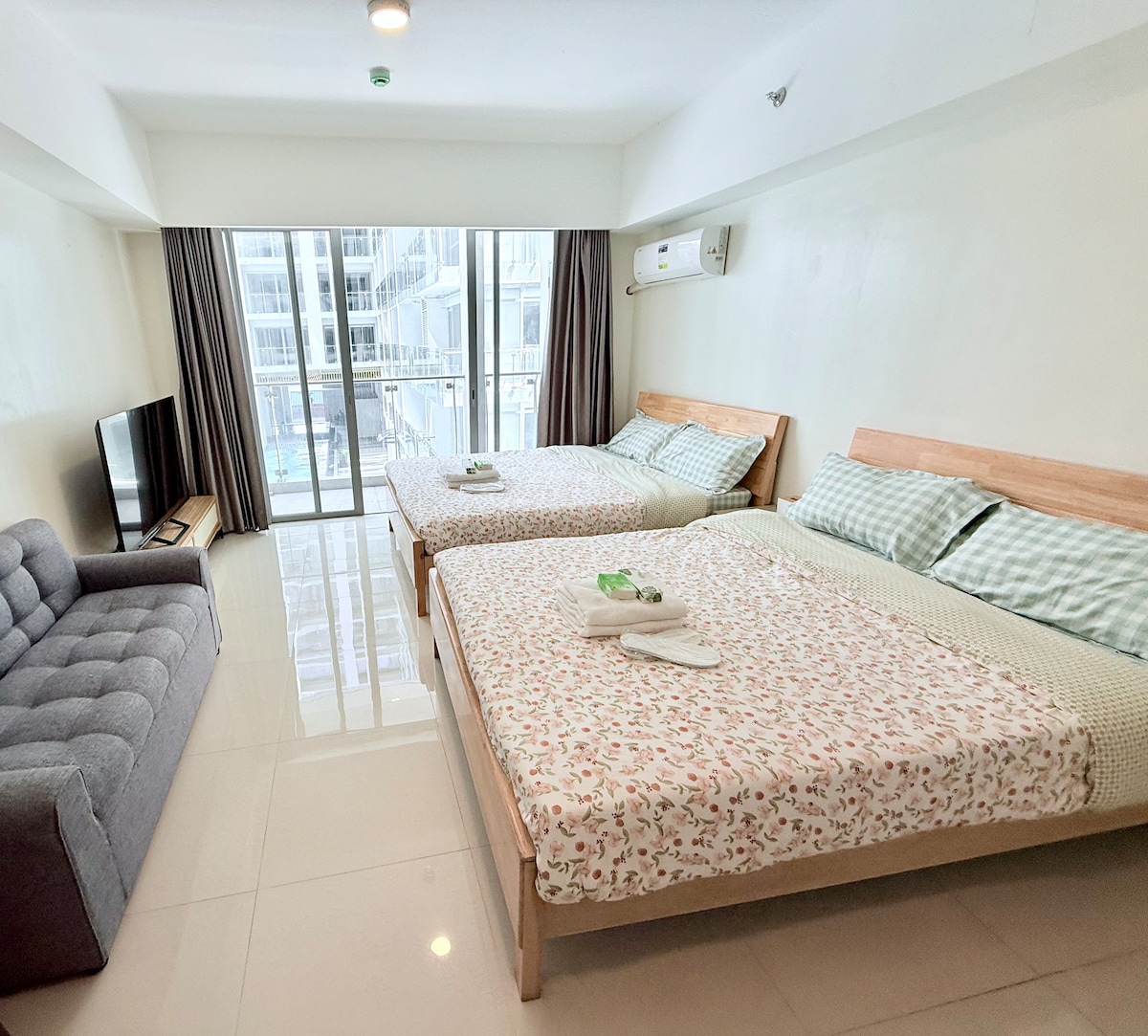 ツインベッド1BR、バルコニー付き、Wi-Fi、Netflix @Shore2 T1 MOA