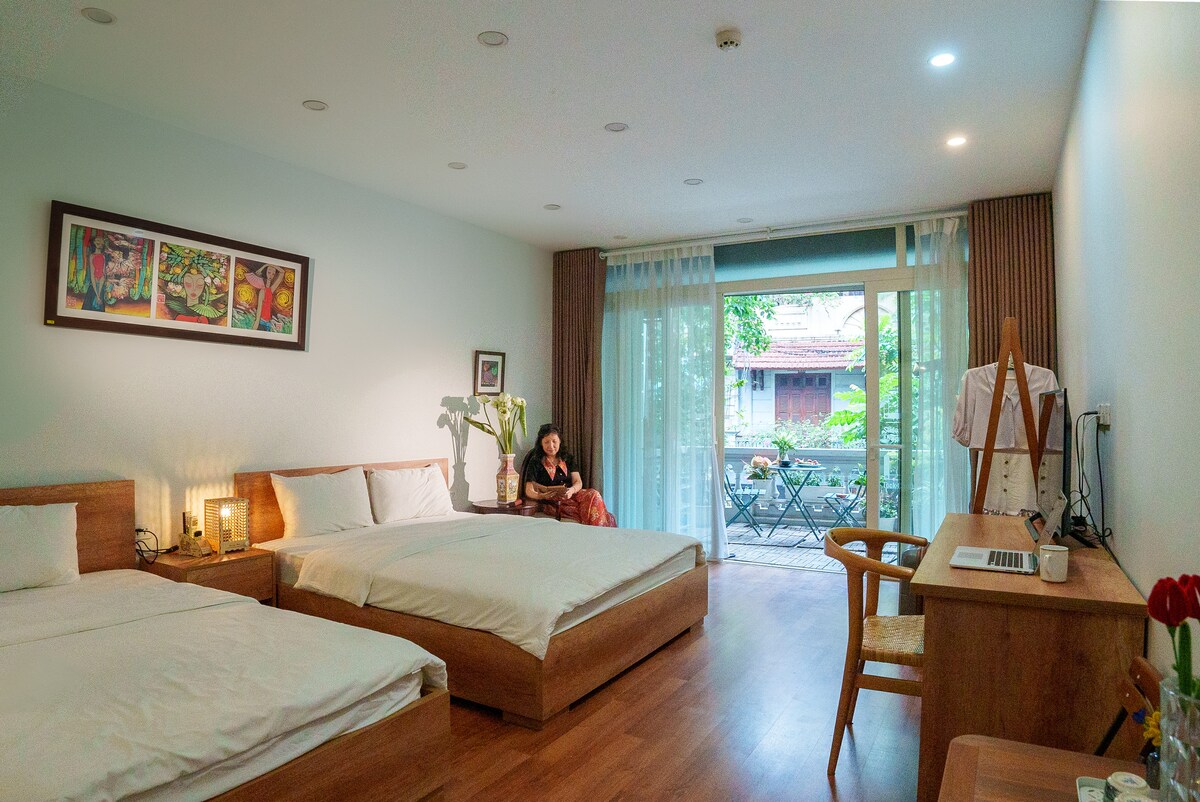 ハノイの中心部にあるプライベートホームへようこそ。旧市街と電車通りから徒歩すぐの場所にある、この130平方メートルの1階の家は、快適さと珍しい機能を融合させ、真にユニークな滞在を提供します。アパートには、モダンなアメニティ・設備、キングサイズベッド4台を備えた3つの寝室、ミニプールを備えた専用の裏庭があります!さらに、リビングルームから通過する列車を眺める忘れられない体験をお楽しみください。 宿泊施設についてご不明な点がございましたら、お気軽にご相談ください!