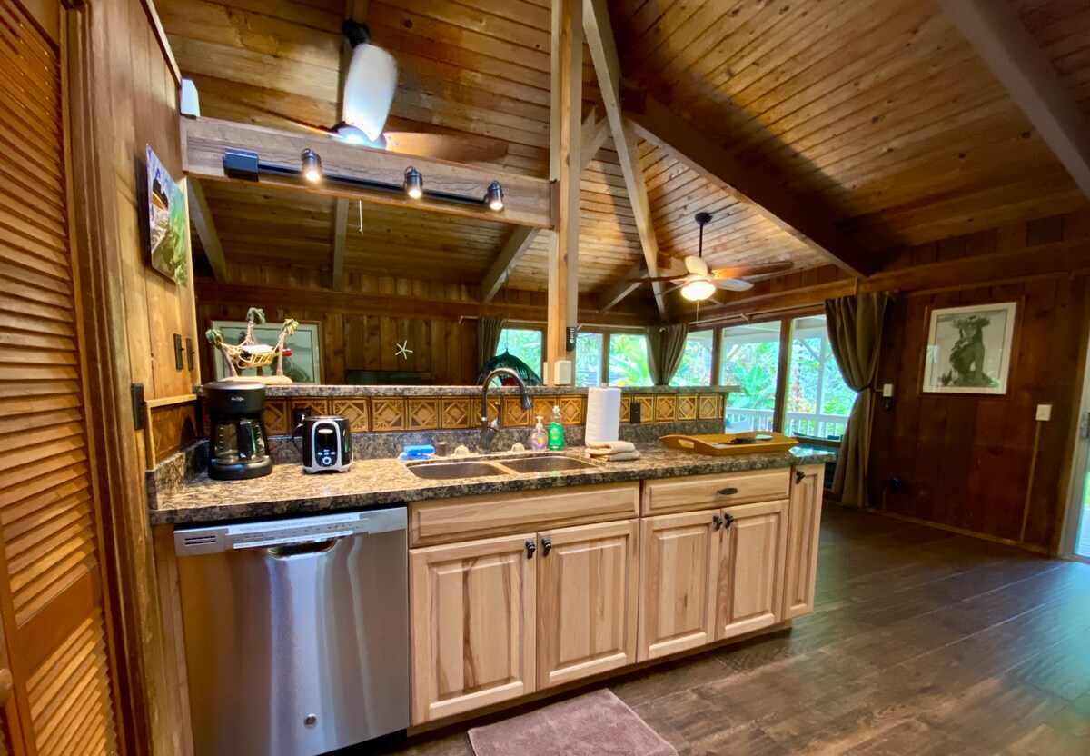 TVNC#1146 - ゲート付きの入り口から、6フィートの溶岩の壁を通り抜けます。 裏手の地上階にある伝統的なハワイアンスタイルの家は、ハウスキーパーの正面の家の後ろにひっそりと佇んでいます。 裏庭のラナイからは、巨大な山と滝の景色が見える保護区が見えます。シダーウッドで裏打ちされた内壁と地元のアート作品が1600平方フィートの家を飾っています。 トンネルビーチまで徒歩1/3マイル、5分 カウアイのライフスタイル 注:津波避難ゾーンにある宿泊施設です。