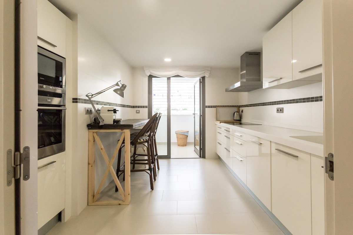 この広々とした(170平方メートル)ユニークな宿泊施設では、グループ全体が快適に過ごせます。ベニドールム全体とベニドールム島の素晴らしい景色。雲の上の静けさと、手の届くところにある大都市の喧騒を楽しんでください。プール、ジム、バスケットボールコートをご利用いただけます。それぞれに専用のバスルームとドレッシングルームがある3つのベッドルーム、広いリビングルーム、広々としたテラス。家のガレージに駐車場があります。レバンテビーチまで徒歩5分。