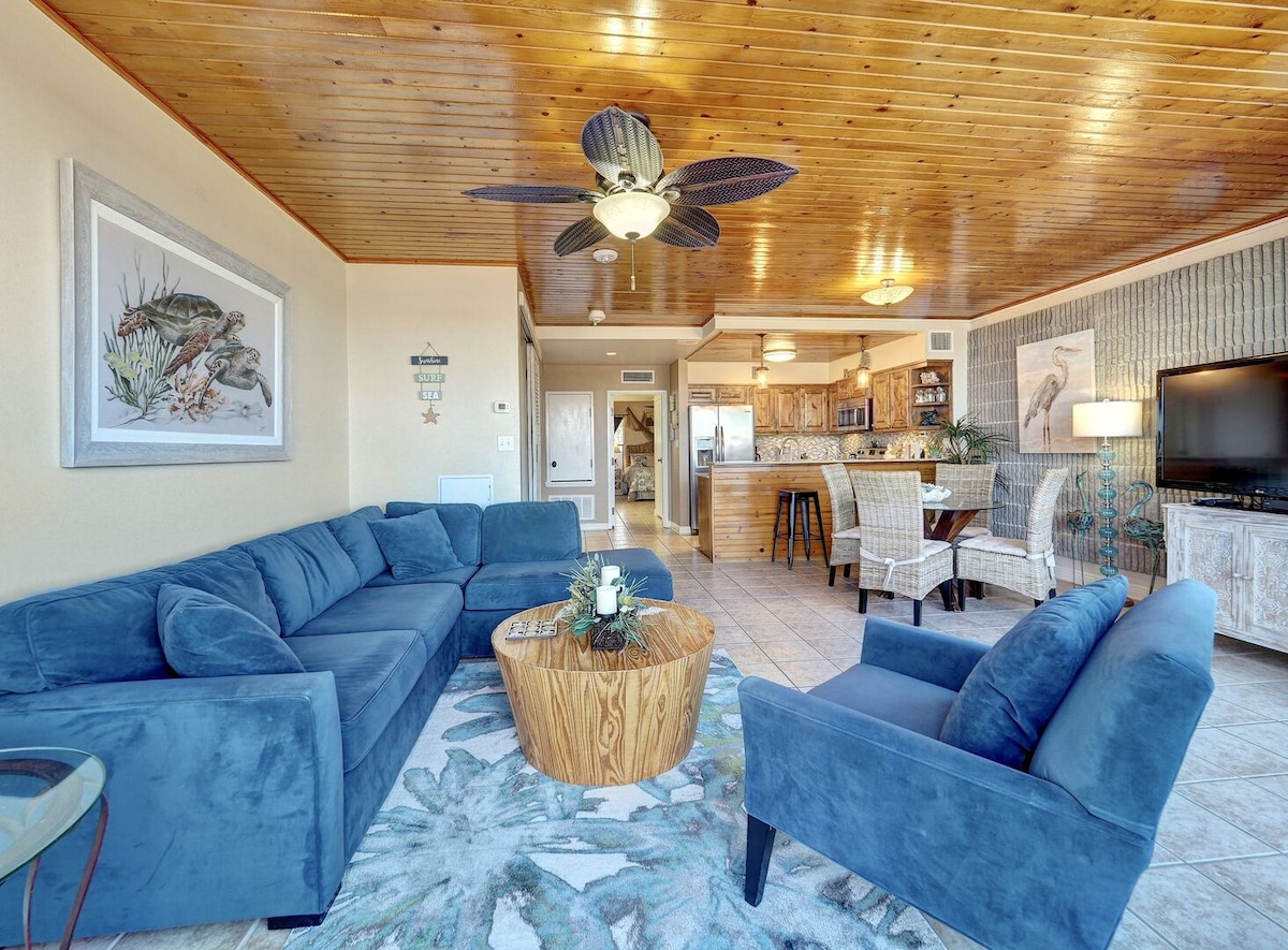 Travel Well Propertiesがホストする「A View to Sea」で、湾岸の上で目を覚まし、テキサスの月の下で夜を終えましょう。Mustang Towersの14階に位置する、美しく整えられた2ベッドルーム、2バスルームのオーシャンビューのコンドミニアムは、専用バルコニーから日の出、高く舞うペリカン、そして果てしない青い海を目の前に楽しめます。 🌊 メキシコ湾を一望できる14階の専用バルコニー 🏖️リゾートスタイルのプール、ホットタブ、ラウンジチェア 🌅 整備されたビーチへの専用ボードウォーク