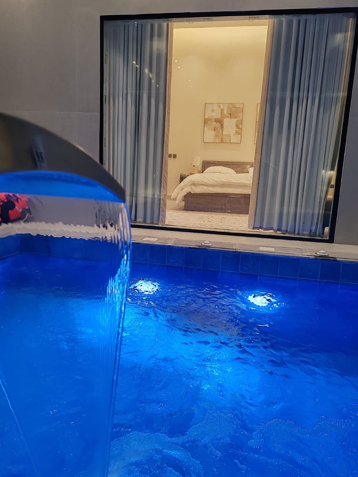 انعم بالهدوء والاسترخاء بصحبة عائلتك في هذا الشالية الرائع يتوفر مسبح رائع بتدفئة مناسب للاطفال وغرفة نوم رئيسة باطلالة بانورامية للمسبح وغرفة نوم بكنب يتحول الى الى اريكه رائعة للاسترخاء مع شاشة بجميع الاشتراكات مع توفر واي فاي وصالة كبيرة تتسع لاكثر من عشرين شخص وفناء خارجي بجلسة مميزه موقع مميز قريب من جميع الاماكن السياحية