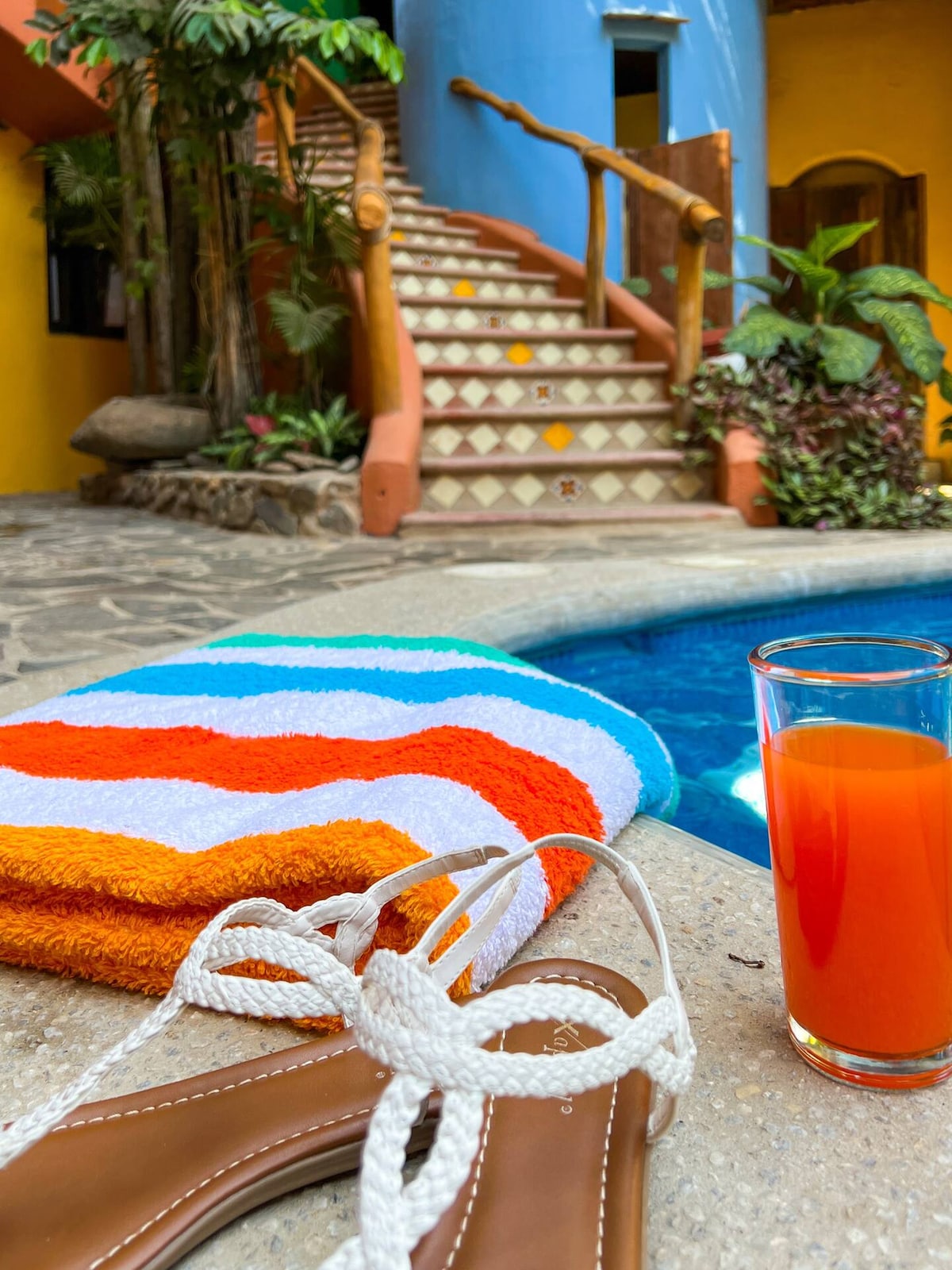 Esther Room: Perfect for couples, this first-floor room features a queen-size bed, a private bathroom, and direct access to a main balcony where you can enjoy the breeze. Guests can relax in the hotel's common areas, including the pool, terraces, and balconies. Just one block from the beach, you'll be close to everything that makes San Pancho special. We would love to welcome you for a comfortable and peaceful stay. Book now!