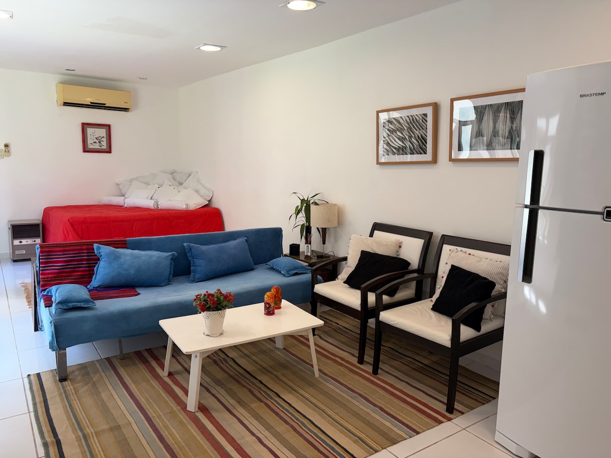 イパネマの中心部にある静かな住宅街にある、独立したプライベートアクセスのワンルームアパートメントです。古くて素朴な建物で、周りには緑がたくさんあります。 ワンルームには、ダブルベッド、温水シャワー付きの専用バスルーム、ミニバー、引き出し付きのドレッサー、エアコンが備わっています。3階にあり、エレベーターはありません。 ビルはラグーンから1ブロック、イパネマビーチから徒歩8分の場所にあり、周辺には商店やバー、レストラン、マーケットなどの多くの食事のオプションがあります。