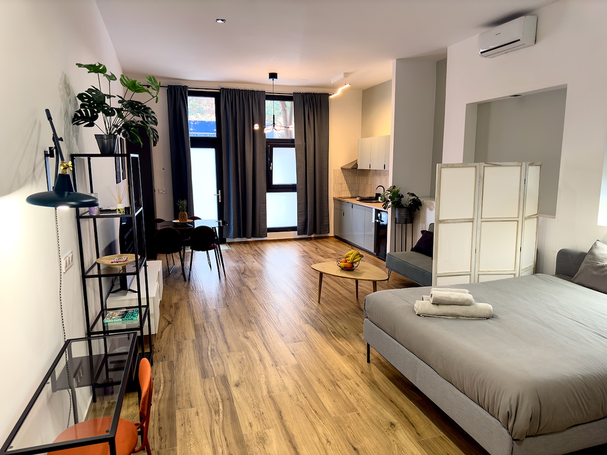 55平方メートルの素晴らしい住宅で、建物から完全に独立したアクセスがあり、まったく新しく、とても素敵で快適な雰囲気です。ダブルベッドの寝室1室、大人2人まで寝られる快適なソファベッド1室、キッチンとダイニングルームが一体化されています。建物の下にあります。このエリアはとても静かで、家族的な雰囲気があり、近くにはレストラン、ショップ、スーパーマーケットなどがあり、市内中心部から徒歩圏内で、地下鉄やバス停もすぐ近くです。