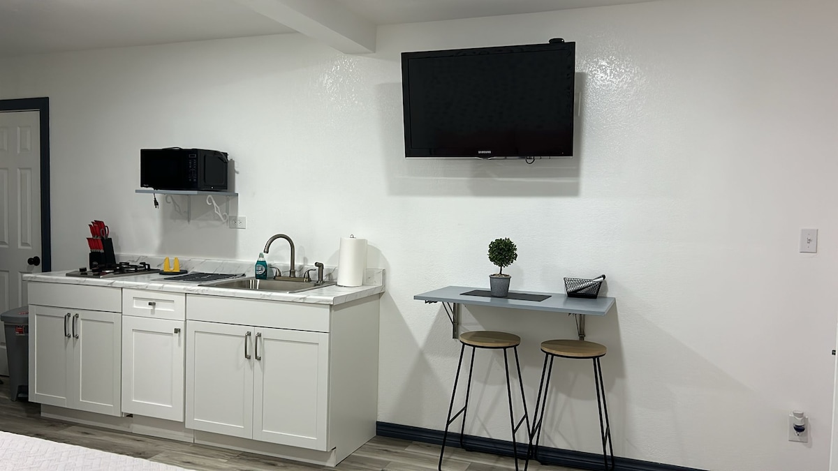 ゲストハウスでの平穏な滞在。医療センターに近く、ダウンタウンからも数分です。 安全で快適な滞在ができます。フルキッチン、専用駐車場、キングサイズベッドを備えています。夜、就寝前に暖炉のそばで夜をお楽しみください。 ペットは25ドルで最大2匹まで受け入れます。 アーリーチェックイン/レイトチェックアウトが可能な場合があります。このオプションが必要と思われる場合は、お問い合わせください。アーリーチェックイン/レイトチェックアウトのオプションには、追加料金$の請求が送信されます。 お問い合わせください。子犬を連れてくる場合は、ドギーステーションの設定をお知らせください。