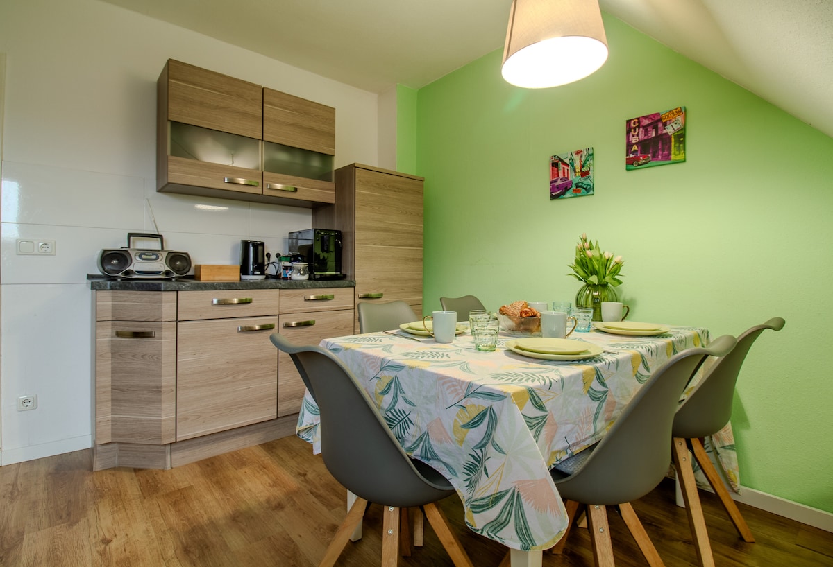 Ob als Ferienwohnung für den Familienausflug oder für Messegäste, Sie werden von traumhaften 110 qm Wohnung zum anspruchsvollen Verweilen eingeladen. Genießen Sie das besondere Interieur: Edle Materialien für hohe Ansprüche. Die hochwertige Einrichtung wurde mit Sorgfalt ausgewählt, um Ihr Wohlgefühl zu garantieren.Der Essbereich und die Küche sind offen gestaltet und gliedern sich nahtlos an den lichtdurchfluteten Wohnbereich an.