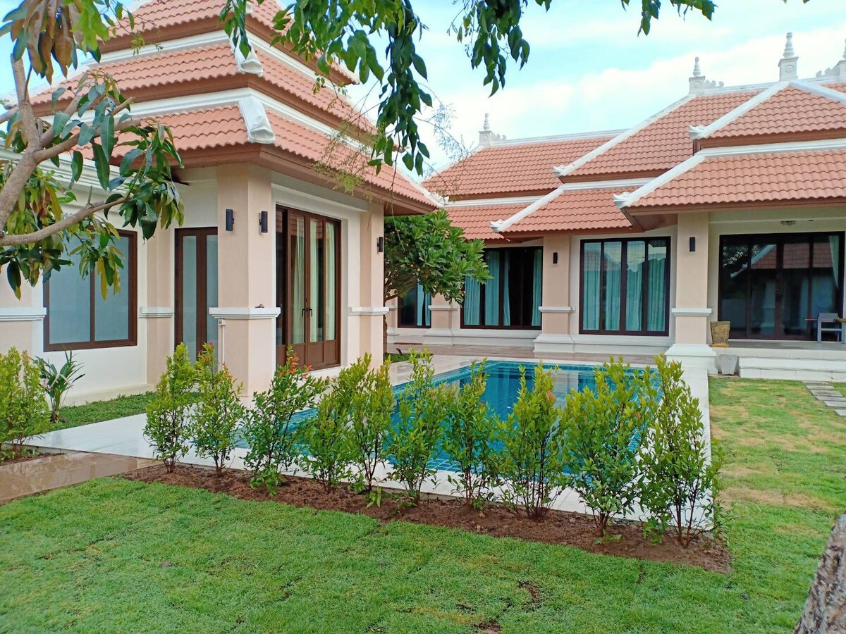 家族や友人が一緒に休暇を過ごせる場所 自然に囲まれた家。 バニチャン市内中心部と観光地の近くに位置しています。U -タパオ国際空港から8 km、最寄りのビーチ( PhlaとPhlayoonビーチ)まで6 ~ 7 km、ゴルフクラブが囲まれています。 イースタン・スター・ゴルフ・コース、エメサリー・ゴルフコース、セント・アンドリュー・ゴルフ場、Phutaluangゴルフコース。