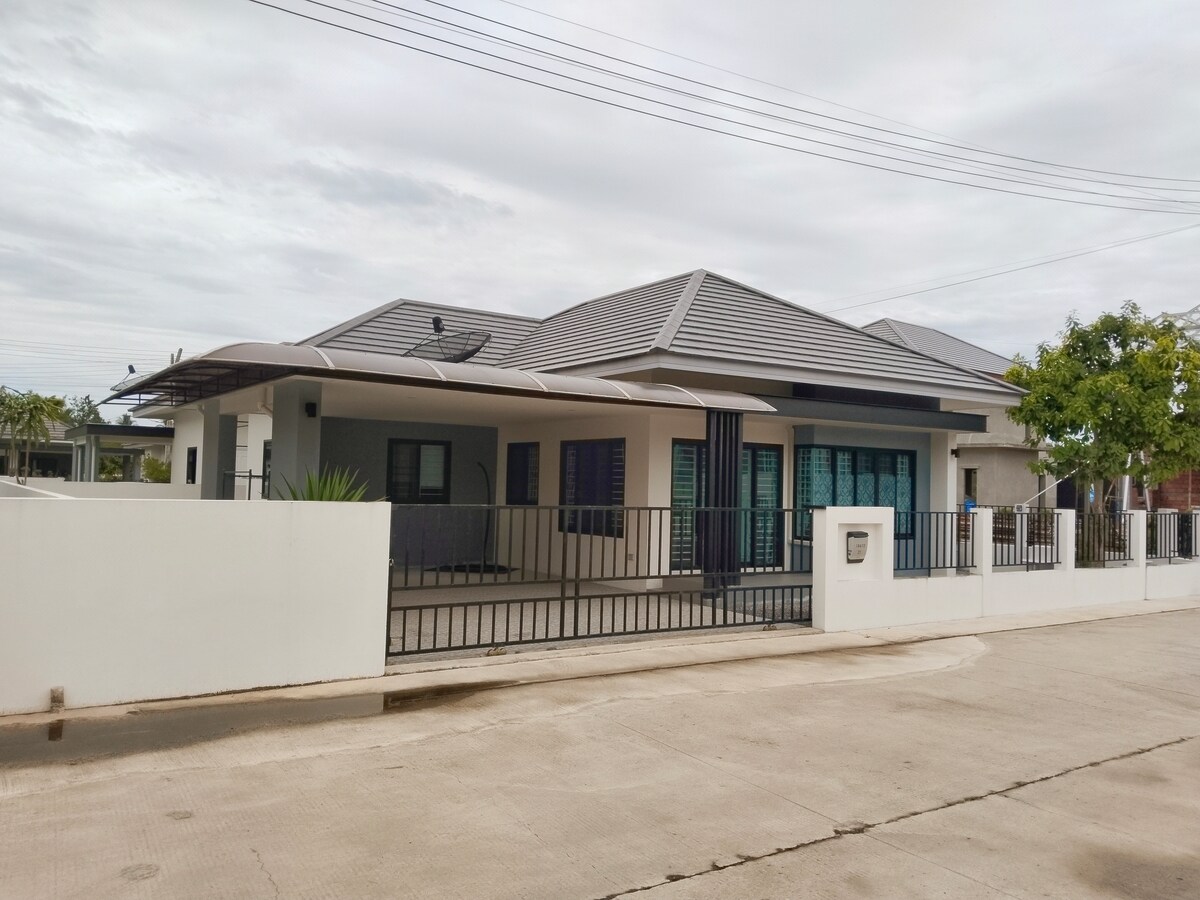 こんにちは。ハヤイ、スラートターニー、バンコクに向かう高速道路の近くにあります。ドリアンが主な果樹園内にある、独立した完全な宿泊施設。静かな場所にあり、鳥のさえずりが聞こえます。 宿泊施設は、ファンとバスルームを備えたエアコン付きの大きな寝室と、現在家具のない他の2つの寝室で構成されています。宿泊施設はとても清潔で、庭全体にアクセスできます。ドアの前の駐車場、監視カメラ、Wi-Fi。